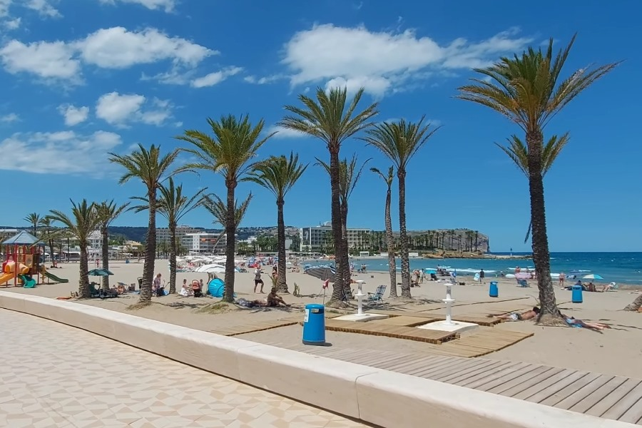 Met de ‘zandvlakte van Jávea’ wordt het strand bedoeld. Het strand is namelijk wel 20 kilometer lang. Het zeewater van de Middellandse Zee is hier nagenoeg altijd wel aangenaam.